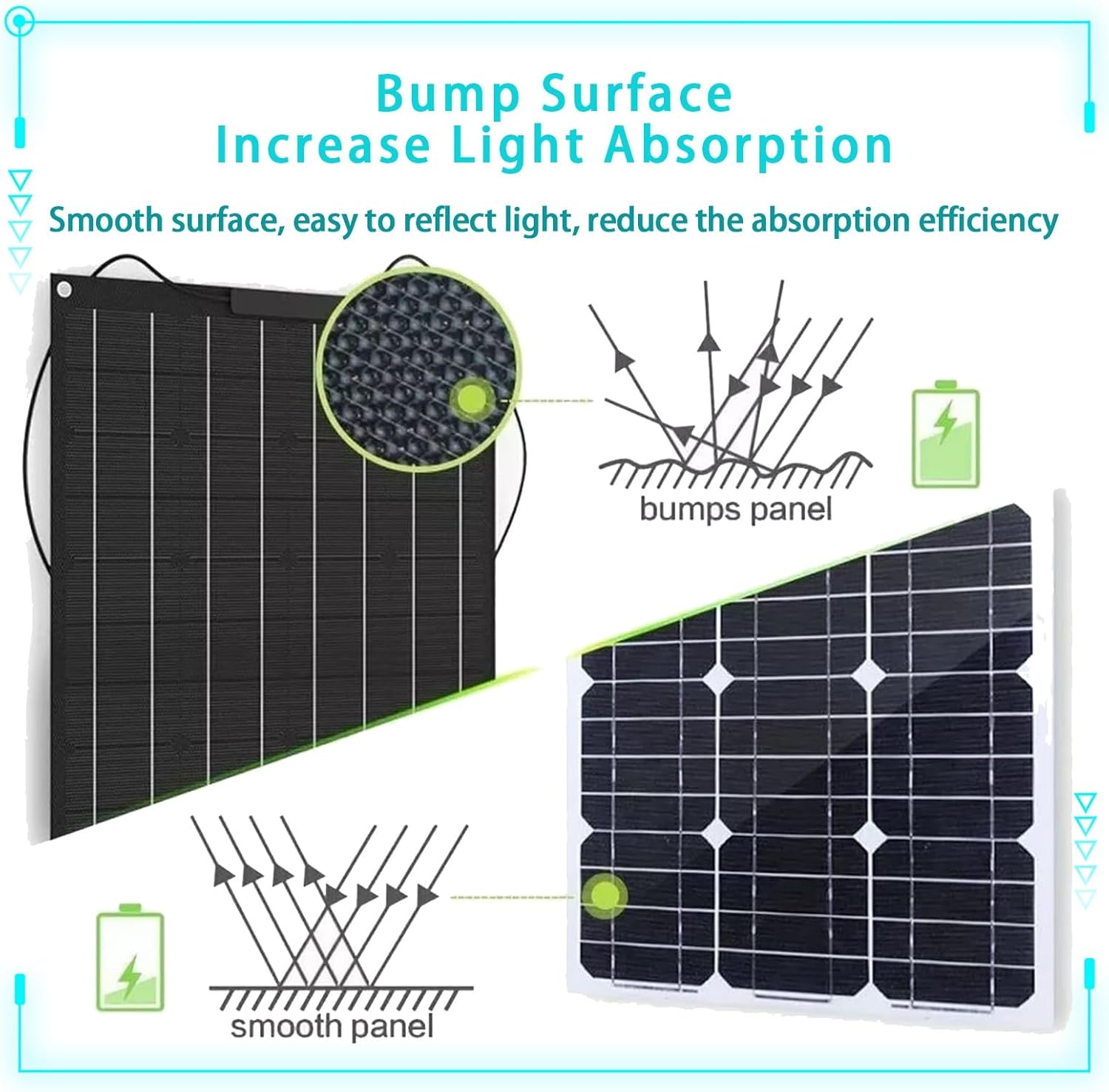 ?Excellent Performance?: The solar panel uses high-quality monocrystalline silicon cells, covered by a high-reflection ETFE layer, which can achieve a high power generation efficiency of over 21%. conversion rate, providing excellent performance even in low-light conditions.