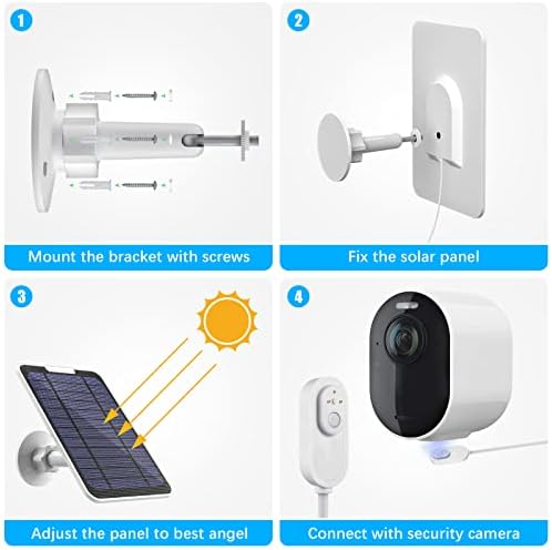 [What will you get]NOTE: ONLY suits for Arlo Pro 3/Pro 4/Pro 5S/Ultra/Ultra 2/Go 2. 1 x 4 w Solar Panel, 1 x 3m/9.8ft Cable with Magnetic Connector, 1 x 360° Mounting bracket, 3 x Screws and Wall Anchors, and a User Manual.