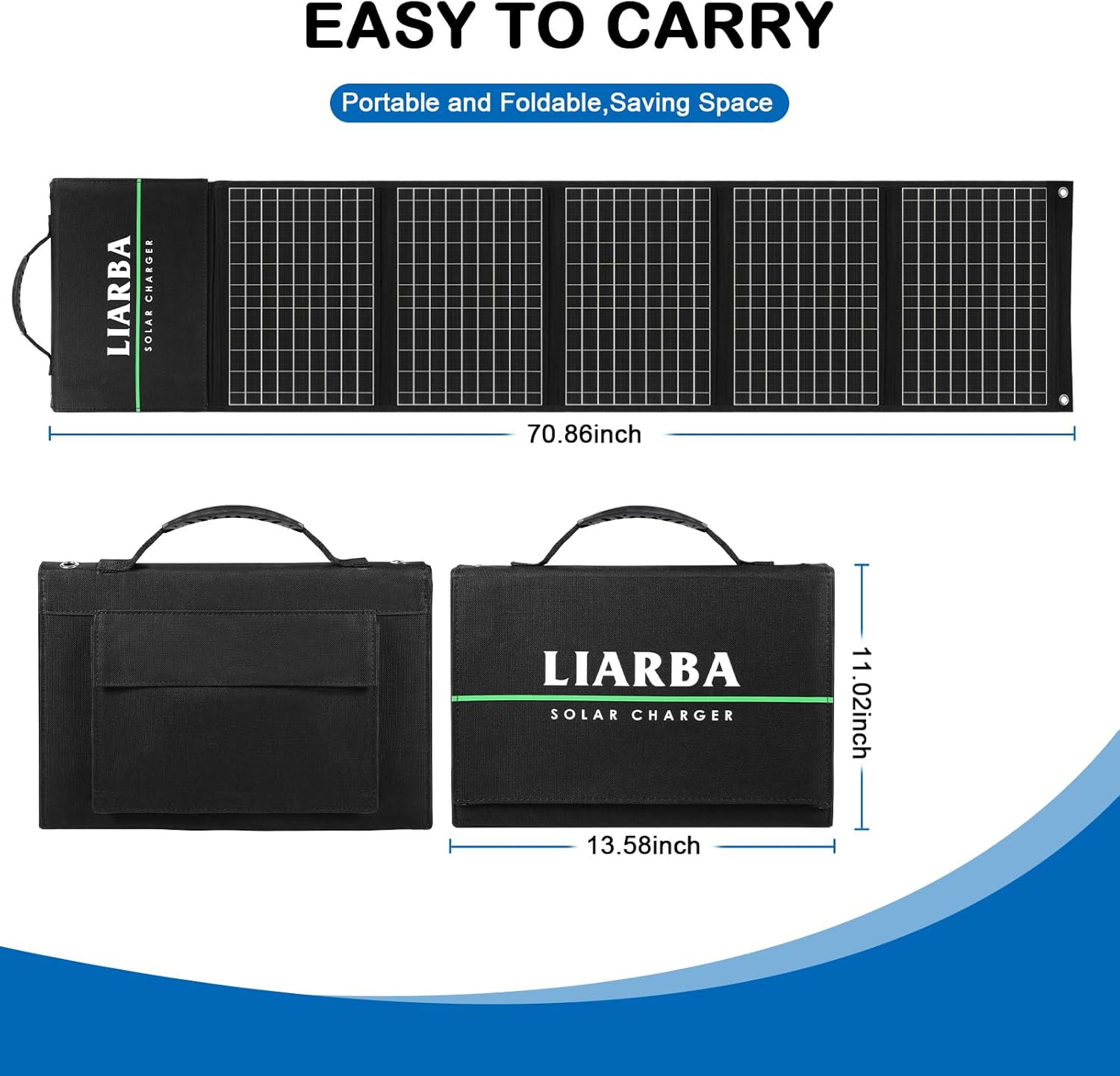 ?PORTABLE CAMPING SOLAR PANEL?Liarba Solar Charger Is A Great Option If We’re Taking An Extended Camping Trip Or If We’re Traveling Somewhere With An Unreliable Power Grid. With Compact Size (13.1×9.6in Folded) And Lightweight(4Lb) Design, It Is Portable And Light Enough To Fit Into Any Camping Backpack Or Hiking Daypack. It Is Also A Must Have For Stashing In An Emergency Kit.