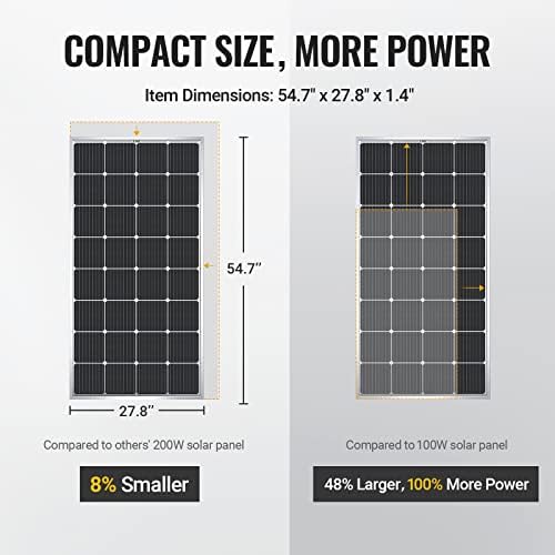 Compact Design, More Power. Compared to other 200W solar panels, BougeRV 9BB 200W solar panel is about 8% smaller but it could power the same or even more. Compared to other 100w solar panels, it’s about 48% larger, but 100% more power, which allows you to install the solar panel on the limited roof of the RV/VAN/Trailer, so you can get more power in the limited space.