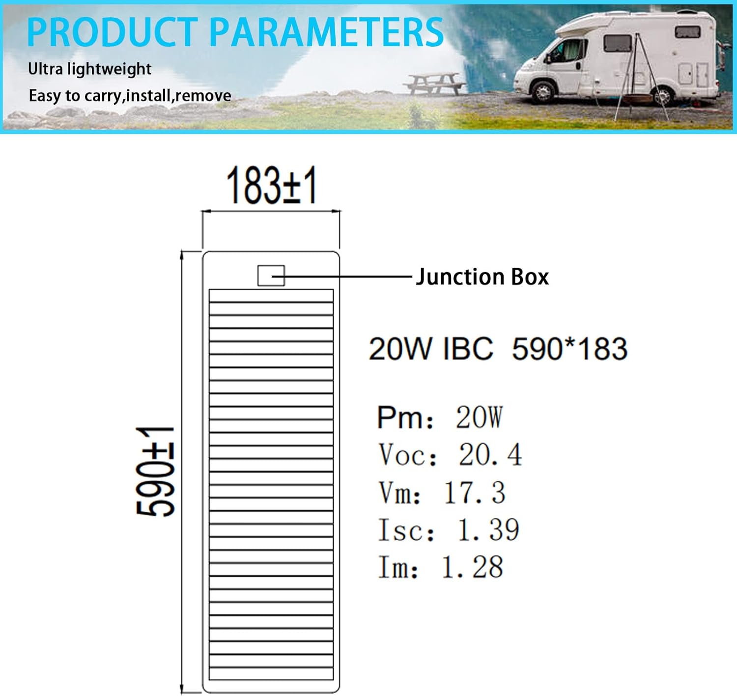 ??ULTRA LIGHTWEIGHT?Weighing 30% less than traditional solar panels and only 0.1 inches thick, L*W: 23.2 x 7.2 inches, easy to install and transport, the product is powerful and durable.