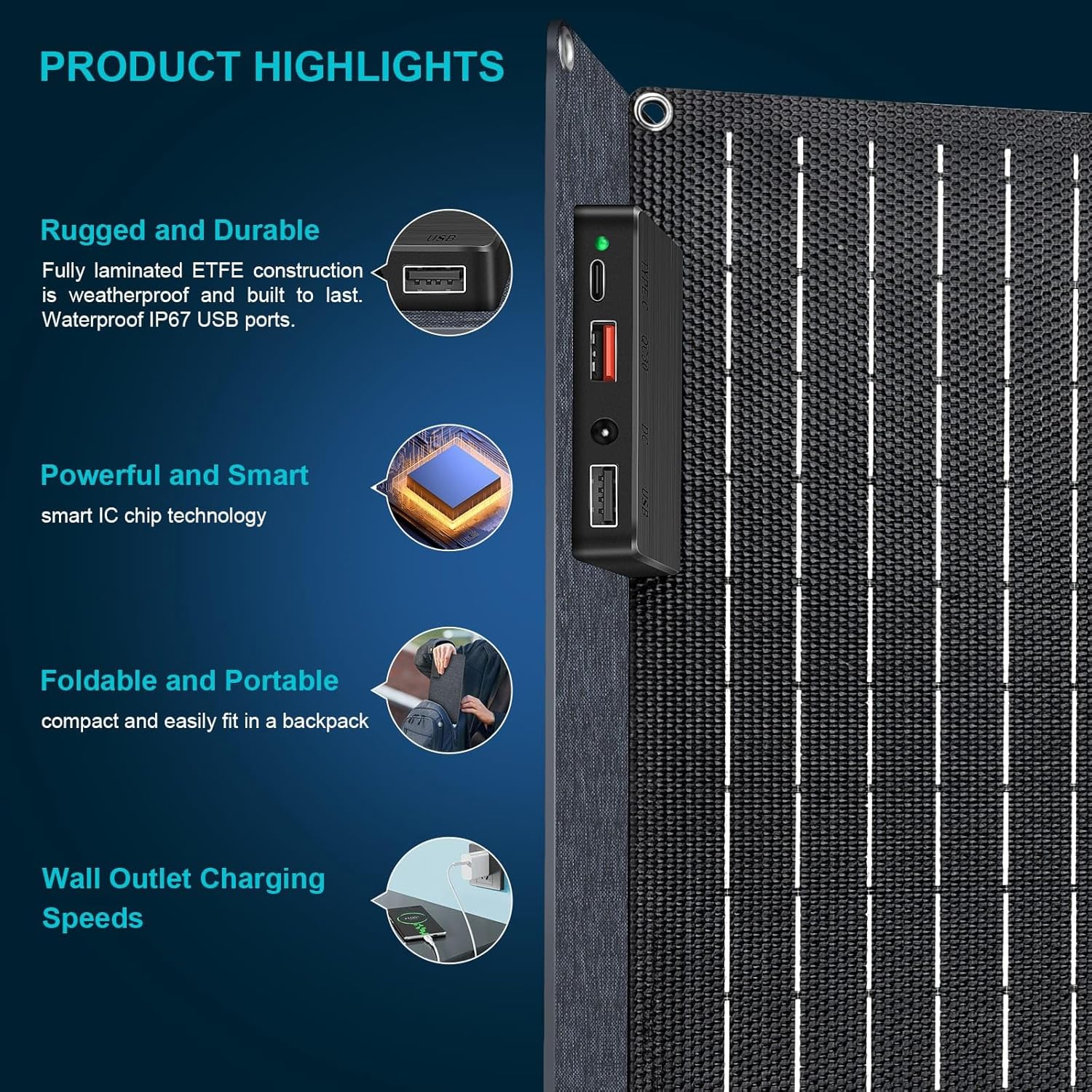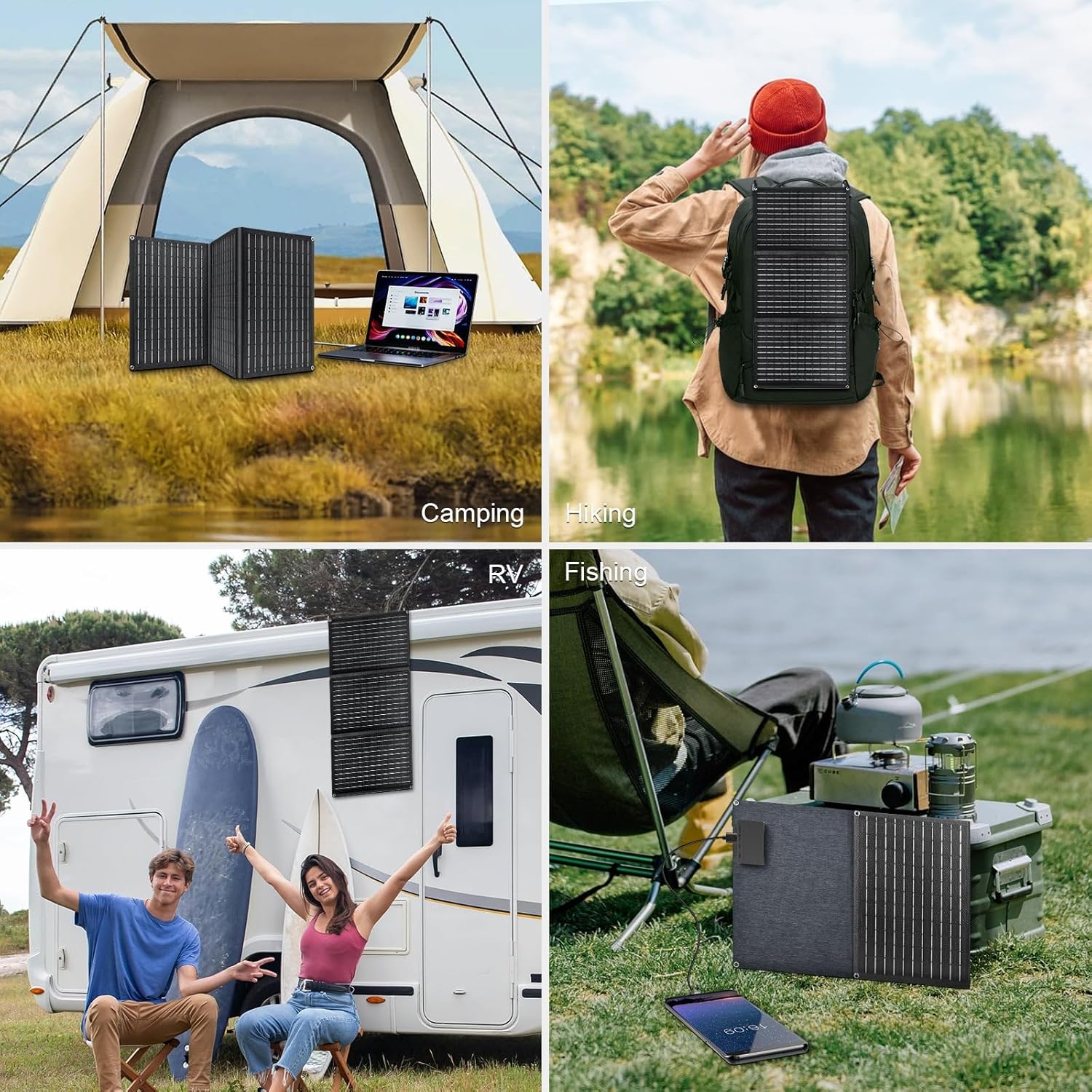 Waterproof & Durable:The special polymer surface protects the foldable solar panel from occasional rain or wet fog, this feature can withstand tearing and bending better than traditional panels.Please Note That The Junction Box Is Not Waterproof, Please Keep It Dry.