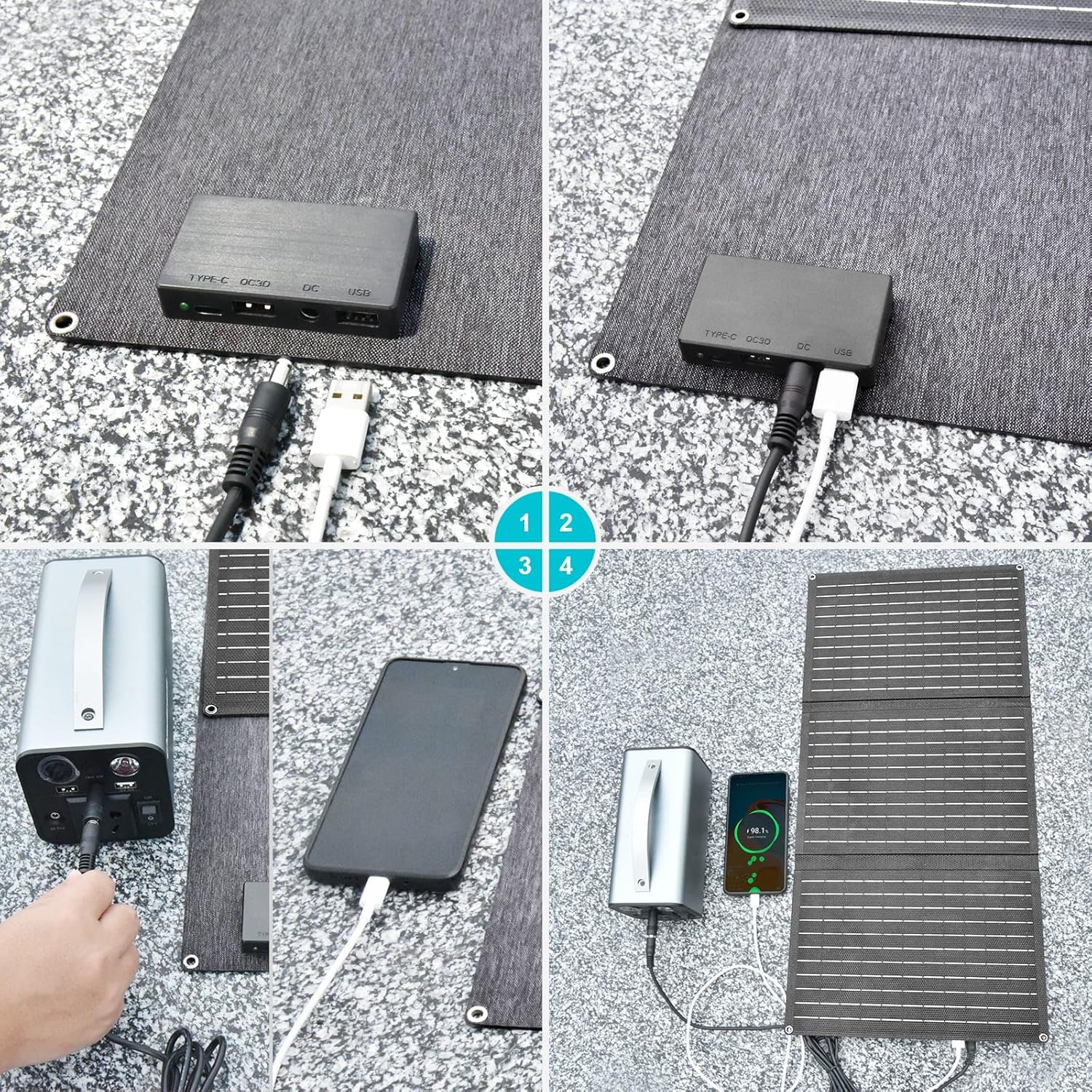 Multifunctional output:TALLPOWER 30W solar panel is equipped with DC outputs , Type-C and USB/QC3.0, this solar battery charger is compatible with most small electronic devices such as smartphones, tablets, earphones as well as portable power stations around 100 Wh.