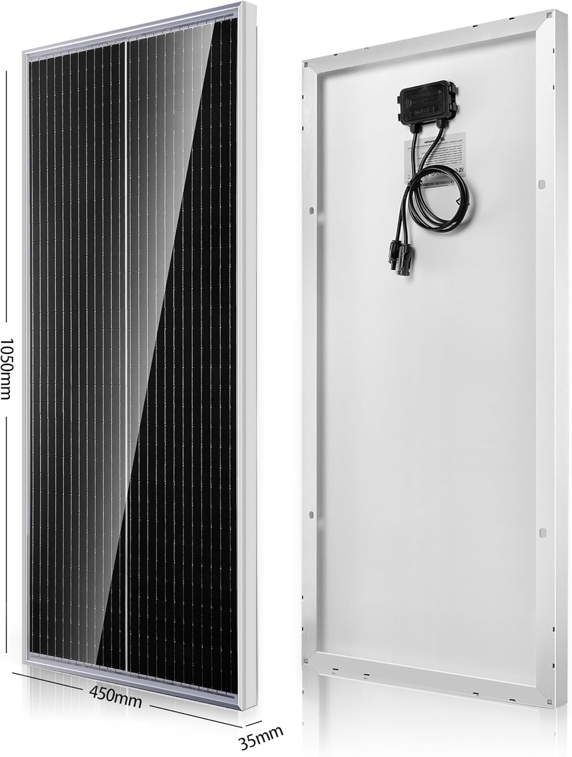 DURABLE SOLAR PANEL – The corrosion-resistant aluminum frame will last for decades and can withstand strong winds (2400 Pa) and snow loads (5400 Pa).