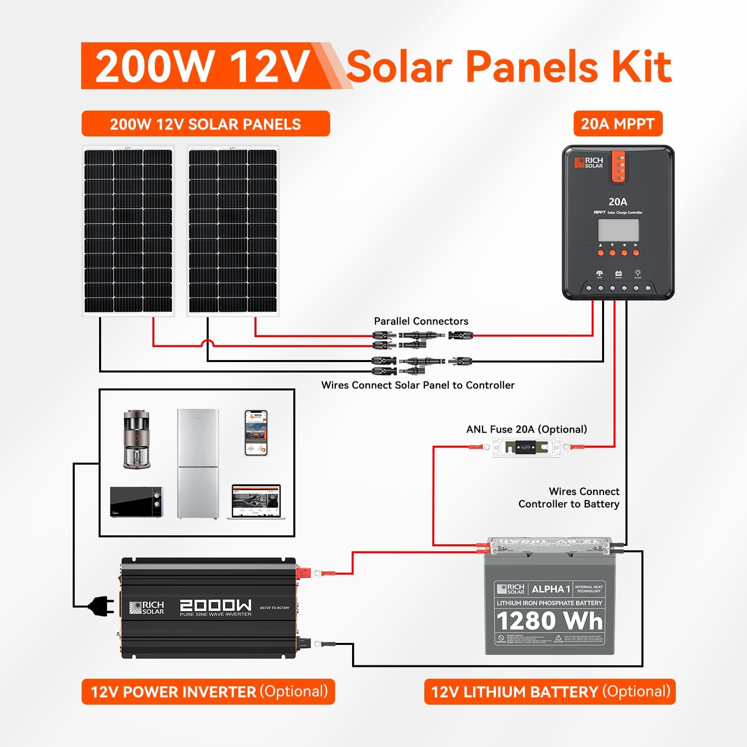 1 100W Solar Panel 2 20A MPPT Controller