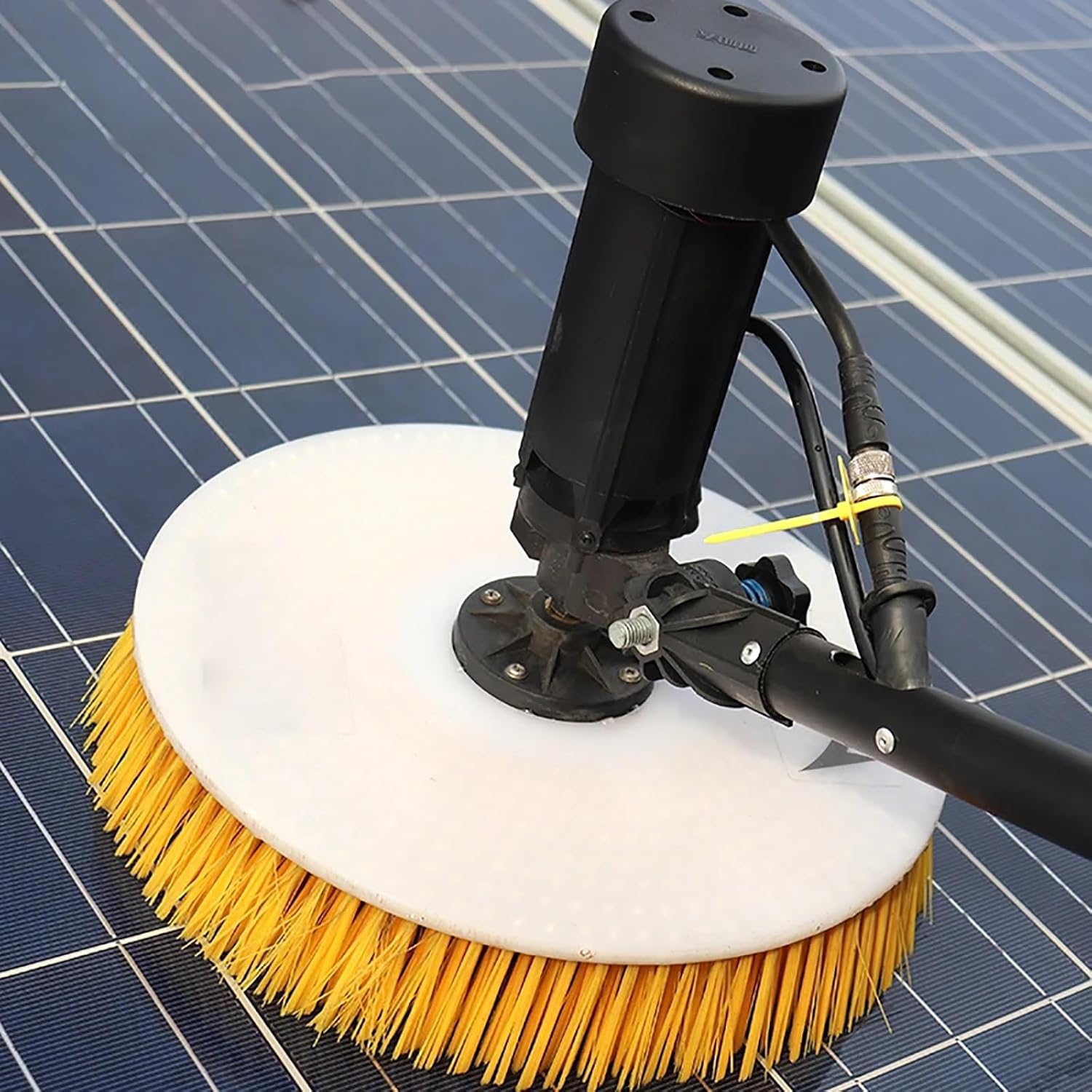 MUST PLUG IN SOCKET – This Solar Panel Cleaning Brush is designed for use with a 110/220V DC pump for efficient short-distance water supply up to 20m. For areas without electricity, it can also connect to a Gasoline Pump, offering versatile options for cleaning Solar Photovoltaic Panels in various environments. Keep your panels clean and efficient!