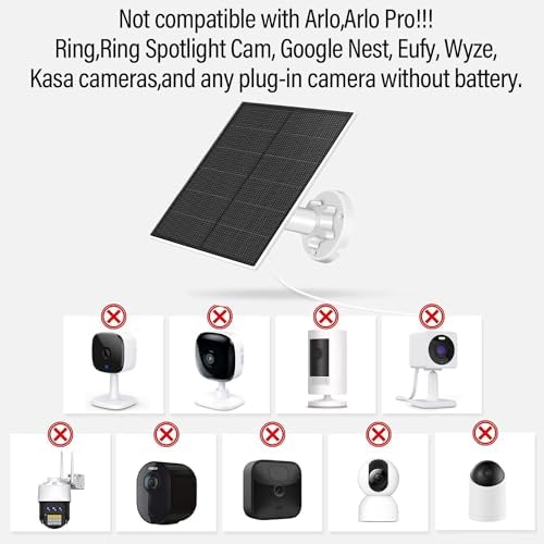 The solar panel do not compatible with Arlo,Arlo Pro!!!, Ring,Ring Spotlight Cam,Google Nest,Eufy,Wyze,Kasa cameras,and any plug-in camera without battery.