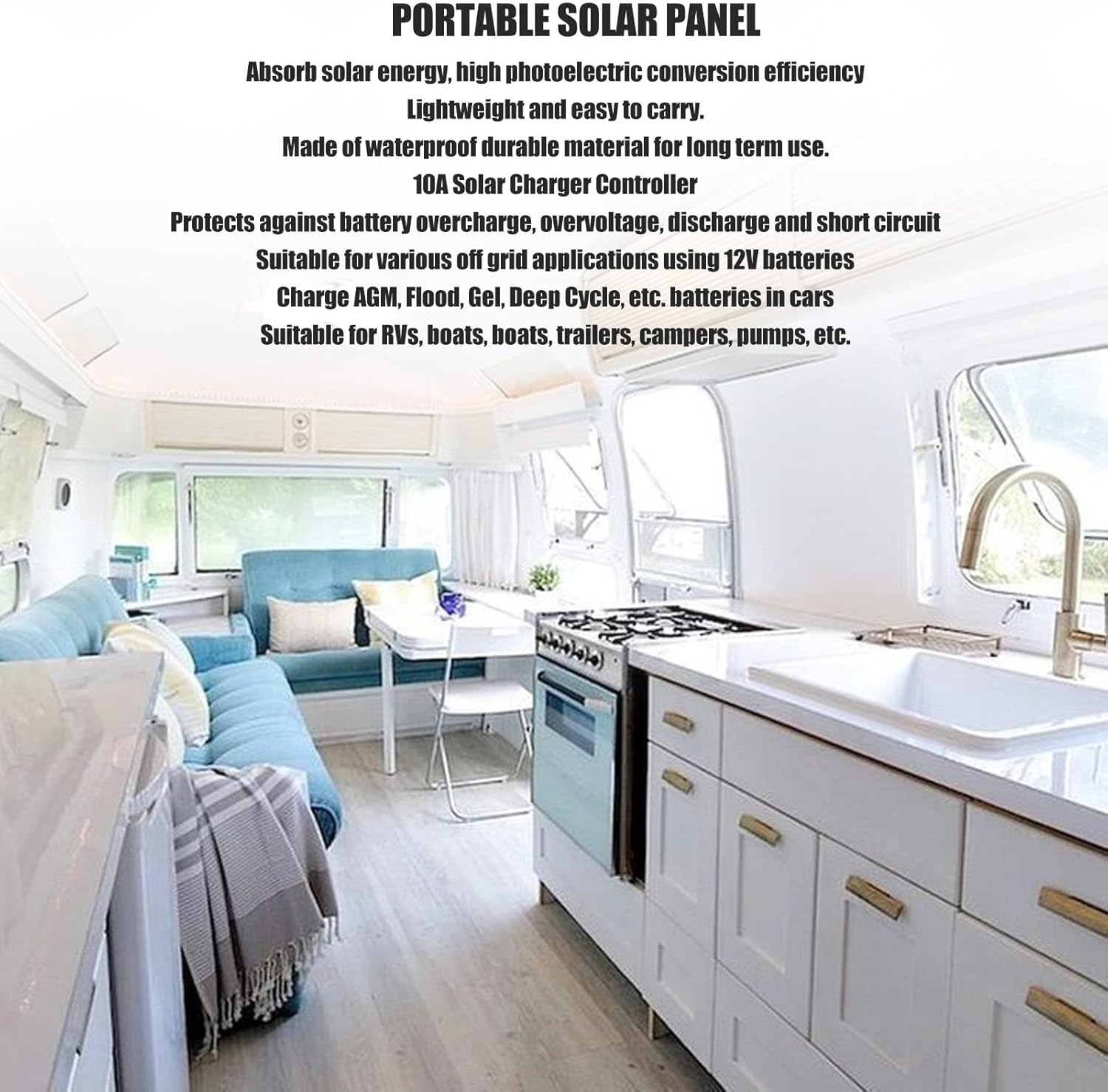 Wide Application: Suitable for various off grid applications using 12V batteries, such as sheds, cabins, door openers, etc., as well as charging AGM, flooded, gel, deep cycle, etc. batteries in cars, suitable for RVs, boats, trailers, campers, pumps, etc.
